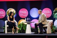 Porto Alegre, RS, 26/03/2026 - Painel: Futuro conectado do e-commerce - Santiago Iñiguez e Viviane Sales na Arena Stage no Cais Mauá no South Summit Brazil 2026. Fotos: Pedro Piegas / PMPA