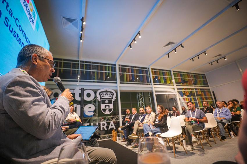 Porto Alegre, RS, Brasil, 26/03/2026: Na manhã desta quinta-feira (26), no espaço Poa Stage do South Summit Brazil 2026, foi realizado o painel Inovando em sistemas alimentares urbanos: Ações práticas e perspectivas. Foto: Alex Rocha/PMPA