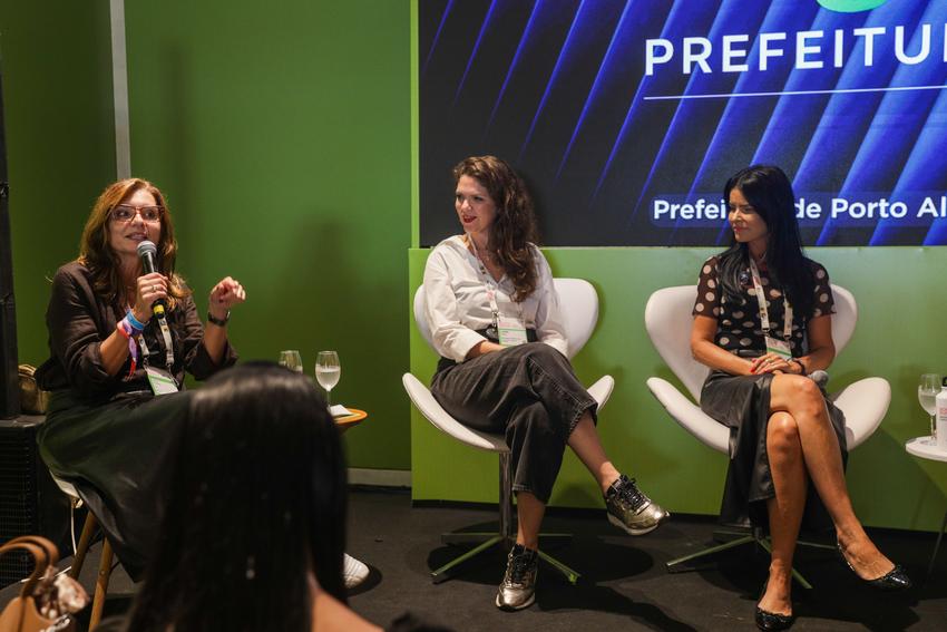 Porto Alegre, RS, 26/03/2026 - Painel: A força da liderança feminina e seu impacto no empreendedorismo e inovação no POA STAGE no South Summit Brazil 2026. Mediação: Carla Villwock (Programa de Empreendedorismo Feminino/Gabinete de Inovação/PMPA). Painelistas: Liana Rigon; Lauren Momback - Programa Avança Mulher Empreendedora/Presidente JUCISRS; Gabriella Bordasch - DaTerra Studio; Danielle Cosme - Programa EVA/Clã Conexões/VP Associação Gaúcha de Startups. Fotos: Pedro Piegas / PMPA