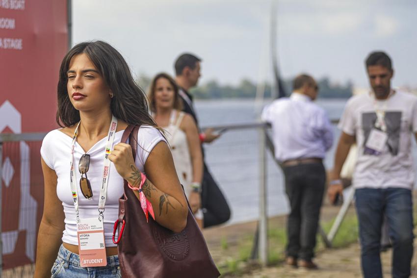 Porto Alegre, RS, Brasil, 26/03/2026: Porto Alegre é novamente a capital brasileira da inovação ao receber a quinta edição do South Summit Brazil. O tema deste ano é Human by Design - conceito que coloca o ser humano no centro do desenvolvimento de tecnologias e produtos. A estrutura ocupa, até sexta-feira, 27, uma área útil de 30 mil metros quadrados, ao longo de quatro armazéns do Cais Mauá. São sete palcos com uma extensa programação de painéis e apresentações, incluindo o POA Stage, liderado pela Prefeitura de Porto Alegre. Durante os três dias do evento, 24 painéis com especialistas de diversas áreas movimentam o POA Stage, que está maior neste ano, com capacidade para 120 espectadores. O POA Stage concentra a maior parte das atividades da prefeitura durante o evento. Foto: Alex Rocha/PMPA