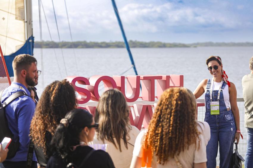 Porto Alegre, RS, Brasil, 26/03/2026: Porto Alegre é novamente a capital brasileira da inovação ao receber a quinta edição do South Summit Brazil. O tema deste ano é Human by Design - conceito que coloca o ser humano no centro do desenvolvimento de tecnologias e produtos. A estrutura ocupa, até sexta-feira, 27, uma área útil de 30 mil metros quadrados, ao longo de quatro armazéns do Cais Mauá. São sete palcos com uma extensa programação de painéis e apresentações, incluindo o POA Stage, liderado pela Prefeitura de Porto Alegre. Durante os três dias do evento, 24 painéis com especialistas de diversas áreas movimentam o POA Stage, que está maior neste ano, com capacidade para 120 espectadores. O POA Stage concentra a maior parte das atividades da prefeitura durante o evento. Foto: Alex Rocha/PMPA