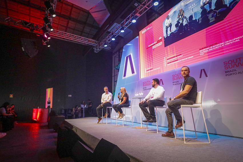 Porto Alegre, RS, Brasil, 26/03/2026: Na tarde desta sexta-feira (27), dentro da programação do South Summit Brazil 2026, no espaço Corner Stage, ocorreu o painel Turismo como um guia de crescimento e desenvolvimento regional. Foto: Alex Rocha/PMPA