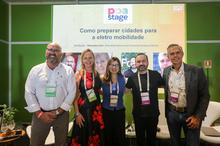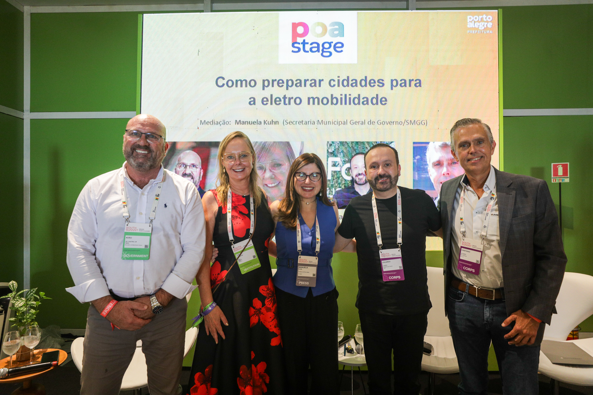 Porto Alegre, RS, 27/03/2026 - Painel: Como preparar cidades para a eletromobilidade no POA STAGE no South Summit Brazil 2026. Mediação: Manuela Kuhn (Secretaria Municipal Geral de Governo/SMGG). Painelistas: Adão Oliveira - Secretário Municipal de Mobilidade Urbana/SMMU/PMPA; Marcell Alexandre de Oliveira da Costa - Diretor do Departamento de Infraestrutura da Mobilidade Urbana – Ministério das Cidades; Carla ten Caten - Coordenadora Unidade EMBRAPII de Mobilidade/SIMOB/UFRGS; Eduardo Silva Costa - CEO Esquina do Futuro. Fotos: Pedro Piegas/PMPA