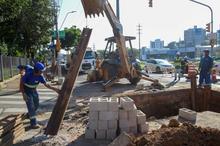 Porto Alegre, RS. 27/03/2026. DMAE realiza conserto em adutora na av. Ipiranga 6681, em frente a PUC-RS.
