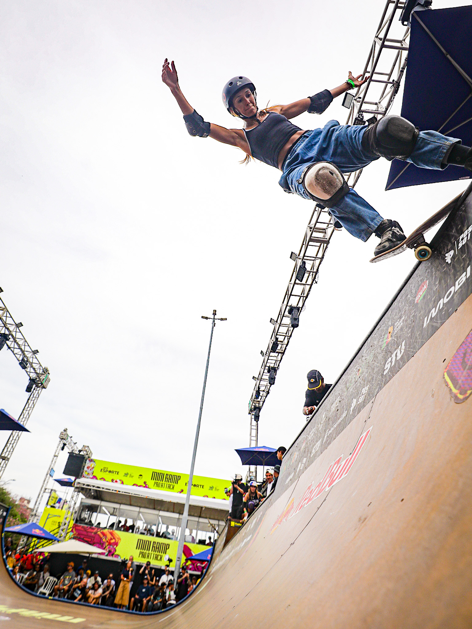 Porto Alegre, RS, Brasil, 29/03/2026: O STU Pro Tour Porto Alegre com as disputas da modalidade Vert, vem nas sus fases decisivas que ocorrem neste domingo, 29, último dia de programações do evento. Além do Vert, o evento também movimenta a Mini Ramp Pro Attack, com disputas no masculino e feminino. A programação deste domingo inicia-se às 13h05, com a semifinal masculina de Mini Ramp, seguida pela semifinal do Vert, às 14h10. As finais começam às 15h15, com a decisão feminina da Mini Ramp. Na sequência, às 16h15, ocorre a final masculina da Mini Ramp, e, às 16h55, a grande final do STU Vert. Foto: Alex Rocha/PMPA