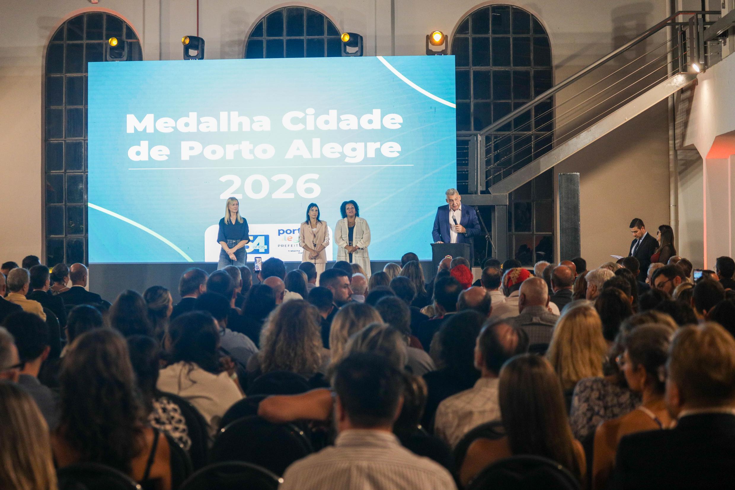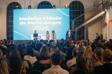 Porto Alegre, RS, 30/03/2026 - A cerimônia de entrega da Medalha Cidade de Porto Alegre ocorreu nesta segunda-feira, 30, no Teatro Elis Regina, na Usina do Gasômetro. O evento é realizado tradicionalmente no mês de aniversário da cidade. Neste ano, em que a Capital completa 254 anos, 30 personalidades, empresas e instituições foram homenageadas com a condecoração, que reconhece a atuação relevante para o desenvolvimento social, cultural e econômico de Porto Alegre. Fotos: Pedro Piegas / PMPA