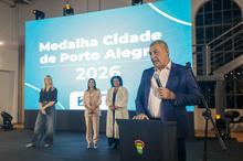 Porto Alegre, RS, 30/03/2026 - A cerimônia de entrega da Medalha Cidade de Porto Alegre ocorreu nesta segunda-feira, 30, no Teatro Elis Regina, na Usina do Gasômetro. O evento é realizado tradicionalmente no mês de aniversário da cidade. Neste ano, em que a Capital completa 254 anos, 30 personalidades, empresas e instituições foram homenageadas com a condecoração, que reconhece a atuação relevante para o desenvolvimento social, cultural e econômico de Porto Alegre. Fotos: Pedro Piegas / PMPA