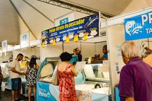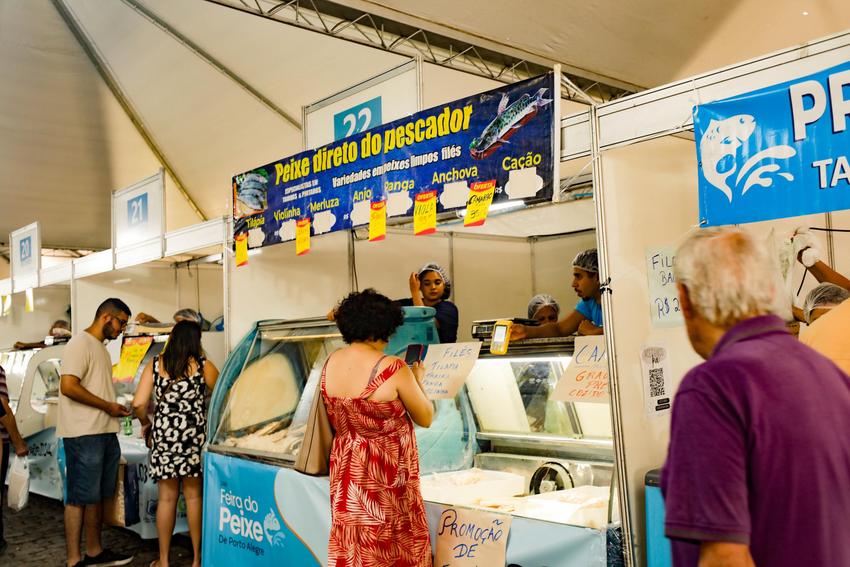 Porto Alegre, RS, Brasil, 31/03/2026: A 246ª Feira do Peixe de Porto Alegre terá o maior número de expositores já registrado desde que a prefeitura assumiu a organização do evento, com 51 bancas. No Largo Jornalista Glênio Peres, no Centro Histórico, a comercialização ocorrerá a partir desta segunda-feira, 30, até sexta-feira, 3, com horários ampliados - de segunda a quarta, das 8h às 22h, quinta-feira, das 8h à meia-noite e na sexta, das 8h às 13h. Outras regiões também receberão a feira, como a Esplanada da Restinga e o bairro Belém Novo, ampliando o acesso da população ao pescado. Foto: Nathally Borowsky/PMPA