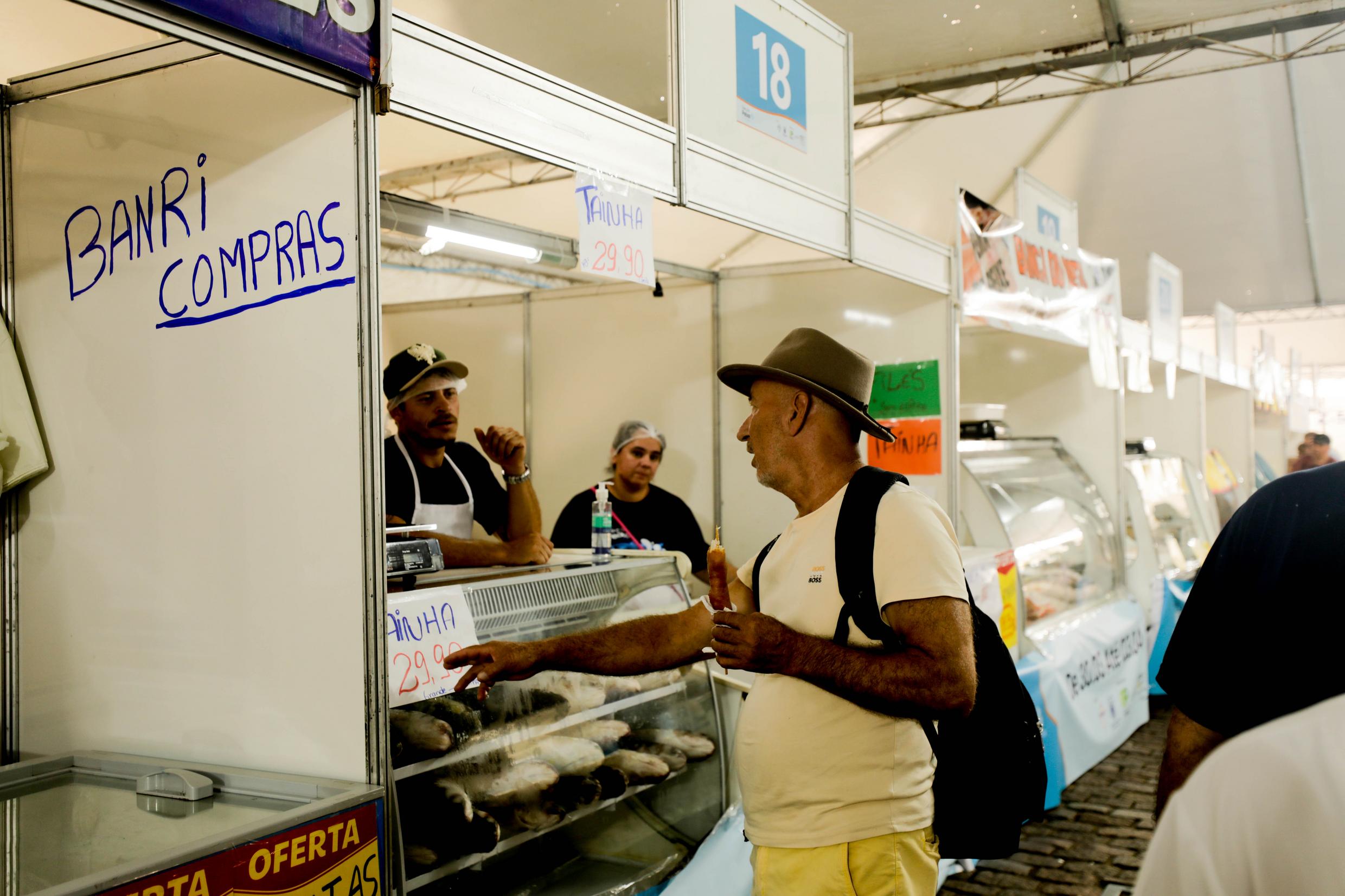 Porto Alegre, RS, Brasil, 31/03/2026: A 246ª Feira do Peixe de Porto Alegre terá o maior número de expositores já registrado desde que a prefeitura assumiu a organização do evento, com 51 bancas. No Largo Jornalista Glênio Peres, no Centro Histórico, a comercialização ocorrerá a partir desta segunda-feira, 30, até sexta-feira, 3, com horários ampliados - de segunda a quarta, das 8h às 22h, quinta-feira, das 8h à meia-noite e na sexta, das 8h às 13h. Outras regiões também receberão a feira, como a Esplanada da Restinga e o bairro Belém Novo, ampliando o acesso da população ao pescado. Foto: Nathally Borowsky/PMPA