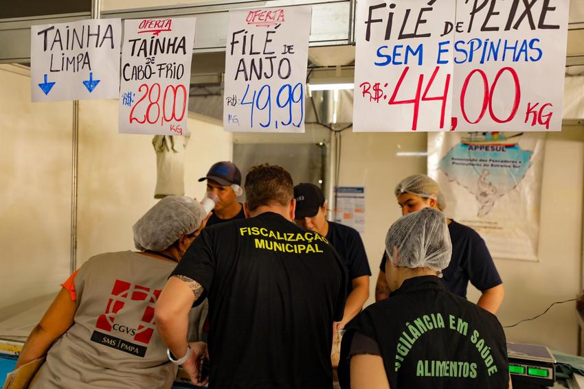 Porto Alegre, RS, Brasil, 31/03/2026: A 246ª Feira do Peixe de Porto Alegre terá o maior número de expositores já registrado desde que a prefeitura assumiu a organização do evento, com 51 bancas. No Largo Jornalista Glênio Peres, no Centro Histórico, a comercialização ocorrerá a partir desta segunda-feira, 30, até sexta-feira, 3, com horários ampliados - de segunda a quarta, das 8h às 22h, quinta-feira, das 8h à meia-noite e na sexta, das 8h às 13h. Outras regiões também receberão a feira, como a Esplanada da Restinga e o bairro Belém Novo, ampliando o acesso da população ao pescado. Foto: Nathally Borowsky/PMPA