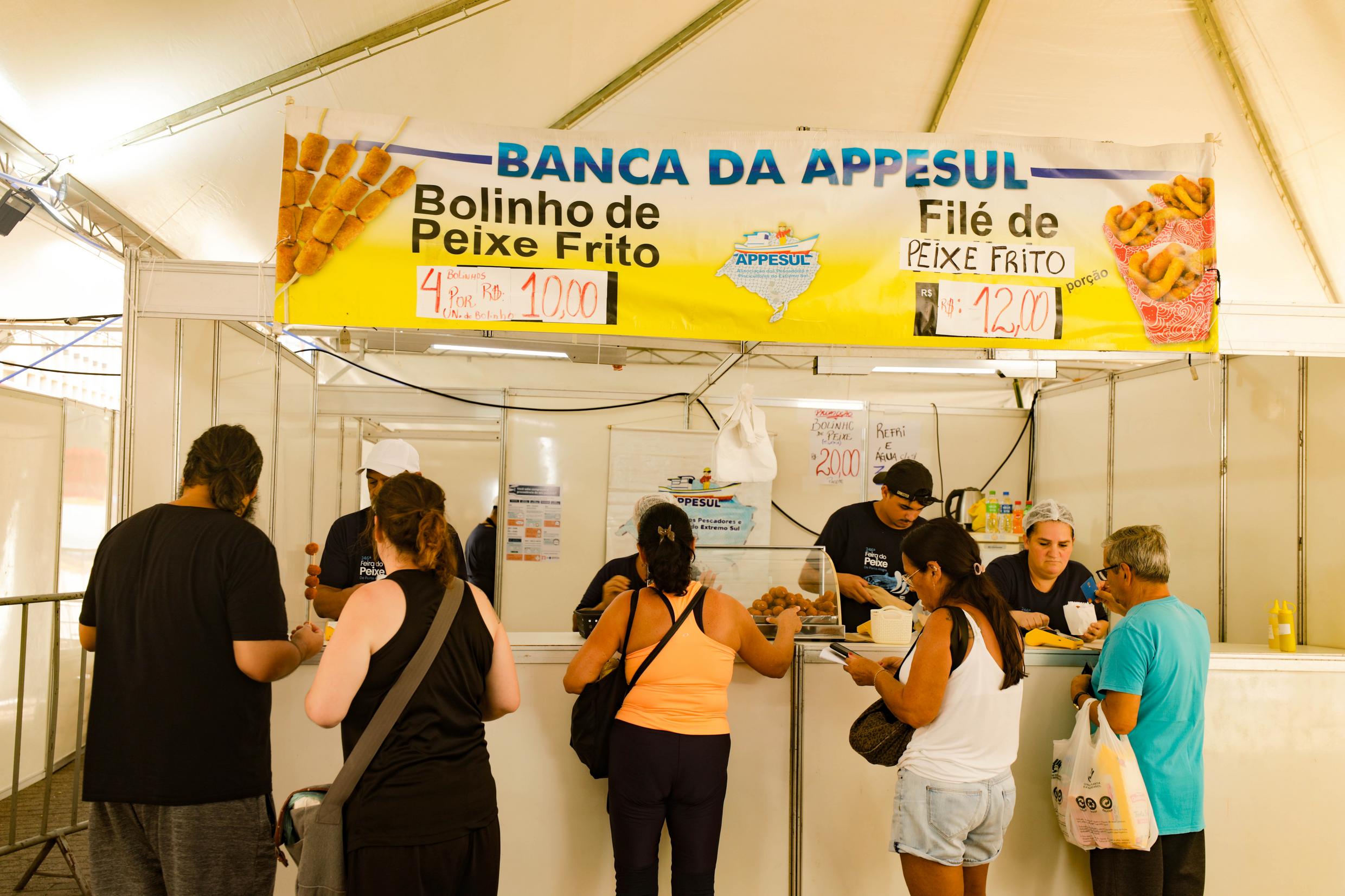Porto Alegre, RS, Brasil, 31/03/2026: A 246ª Feira do Peixe de Porto Alegre terá o maior número de expositores já registrado desde que a prefeitura assumiu a organização do evento, com 51 bancas. No Largo Jornalista Glênio Peres, no Centro Histórico, a comercialização ocorrerá a partir desta segunda-feira, 30, até sexta-feira, 3, com horários ampliados - de segunda a quarta, das 8h às 22h, quinta-feira, das 8h à meia-noite e na sexta, das 8h às 13h. Outras regiões também receberão a feira, como a Esplanada da Restinga e o bairro Belém Novo, ampliando o acesso da população ao pescado. Foto: Nathally Borowsky/PMPA