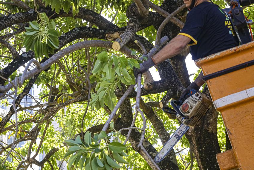 Porto Alegre, RS, Brasil, 31/03/2026: Equipes da prefeitura realizaram, nesta terça-feira (31), o serviço de podas de manutenção na avenida Ipiranga e em ruas paralelas, como na avenida Borges de Medeiros, na altura do bairro Praia de Belas. Foto: Alex Rocha/PMPA