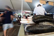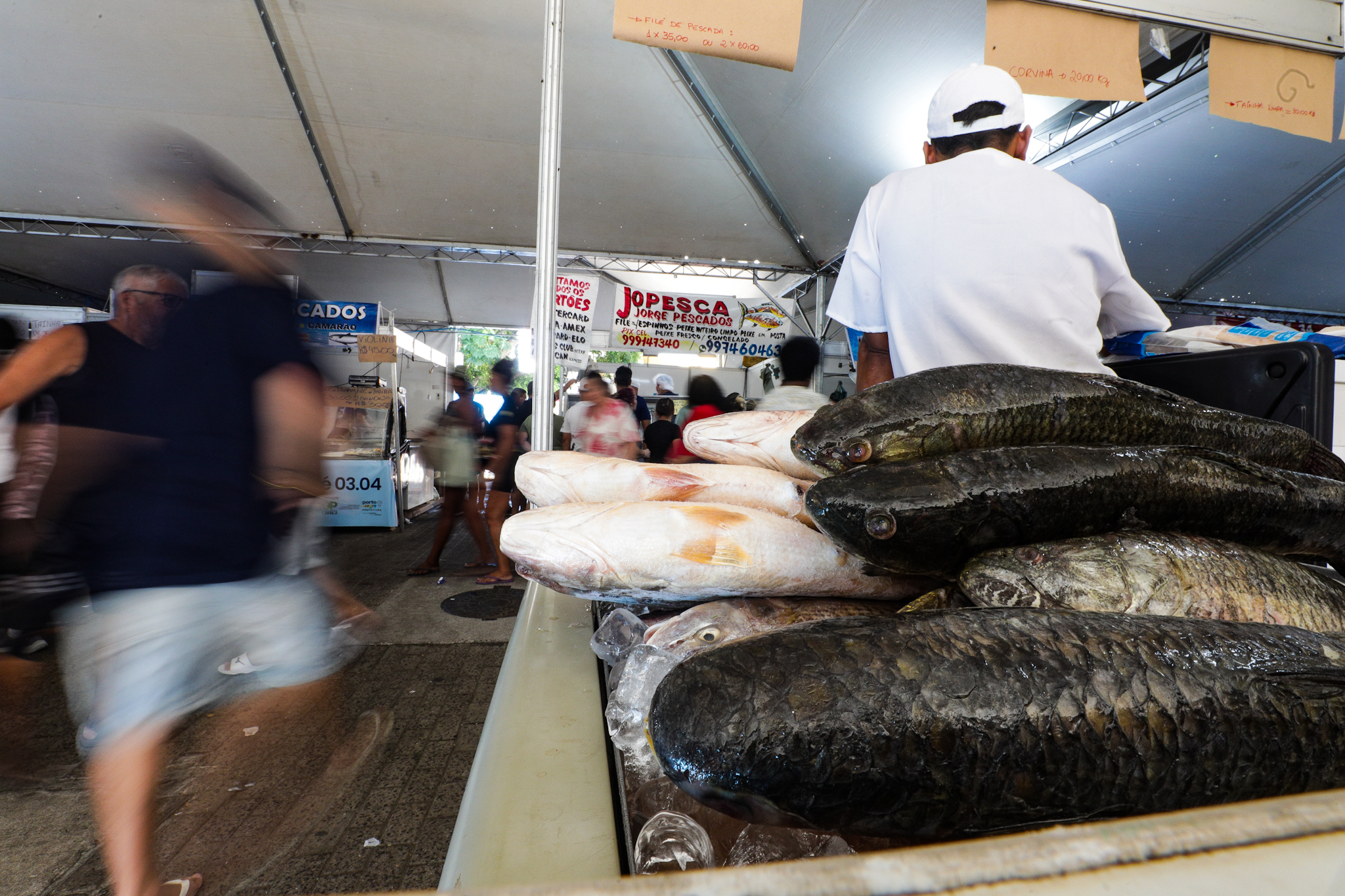 Porto Alegre, RS, 02/04/2026 - A 246ª Feira do Peixe de Porto Alegre apresenta o maior número de expositores já registrado desde que a prefeitura assumiu a organização do evento, com 51 bancas. No Largo Jornalista Glênio Peres, no Centro Histórico, a comercialização ocorre até sexta-feira, 3, com horários ampliados - nesta quinta-feira, 2, das 8h à meia-noite e na sexta, das 8h às 13h. Fotos: Pedro Piegas / PMPA