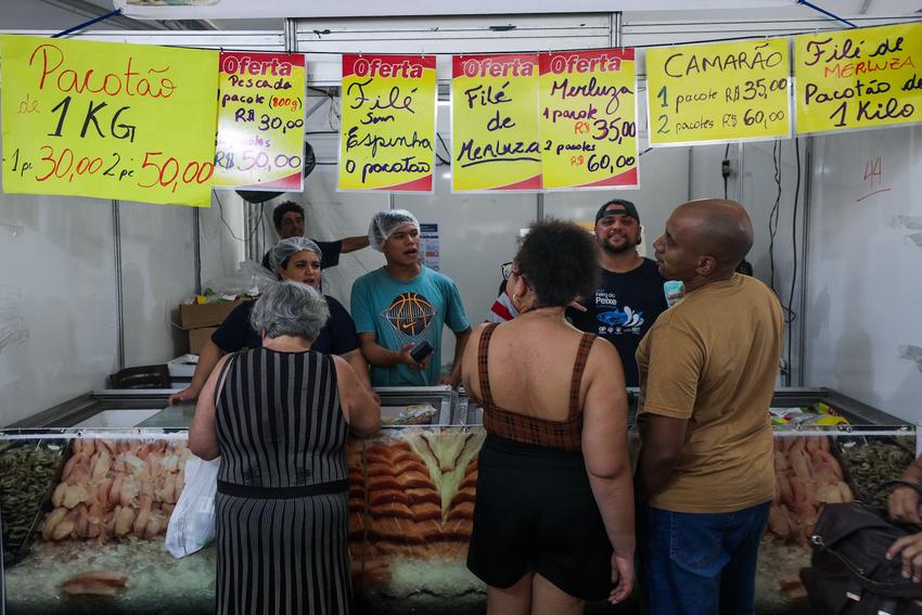 Porto Alegre, RS, 02/04/2026 -  A 246ª Feira do Peixe de Porto Alegre apresenta o maior número de expositores já registrado desde que a prefeitura assumiu a organização do evento, com 51 bancas. No Largo Jornalista Glênio Peres, no Centro Histórico, a comercialização ocorre até sexta-feira, 3, com horários ampliados - nesta quinta-feira, 2, das 8h à meia-noite e na sexta, das 8h às 13h. Fotos: Pedro Piegas / PMPA