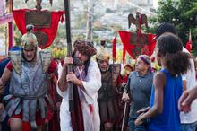 Porto Alegre, RS, 03/04/2026 - Nesta Sexta-Feira Santa, 3 de abril, ocorreu a 67ª encenação da Paixão de Cristo do Morro da Cruz, Zona Leste da Capital. A apresentação começou às 15h30, em frente ao Santuário São José do Murialdo (rua Vidal de Negreiros, 550 - São José), e reuniu artistas profissionais e moradores da comunidade em uma das mais tradicionais manifestações religiosas e culturais da cidade. Fotos: Pedro Piegas / PMPA