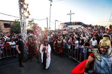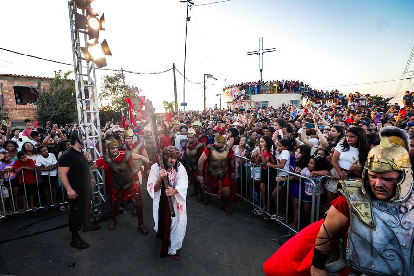 Porto Alegre, RS, 03/04/2026 - Nesta Sexta-Feira Santa, 3 de abril, ocorreu a 67ª encenação da Paixão de Cristo do Morro da Cruz, Zona Leste da Capital. A apresentação começou às 15h30, em frente ao Santuário São José do Murialdo (rua Vidal de Negreiros, 550 - São José), e reuniu artistas profissionais e moradores da comunidade em uma das mais tradicionais manifestações religiosas e culturais da cidade. Fotos: Pedro Piegas / PMPA