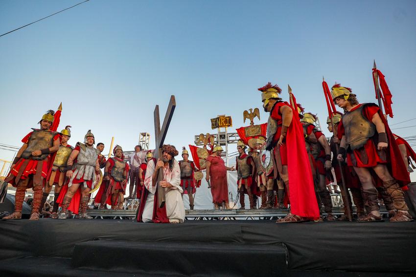 Porto Alegre, RS, 03/04/2026 - Nesta Sexta-Feira Santa, 3 de abril, ocorreu a 67ª encenação da Paixão de Cristo do Morro da Cruz, Zona Leste da Capital. A apresentação começou às 15h30, em frente ao Santuário São José do Murialdo (rua Vidal de Negreiros, 550 - São José), e reuniu artistas profissionais e moradores da comunidade em uma das mais tradicionais manifestações religiosas e culturais da cidade. Fotos: Pedro Piegas / PMPA