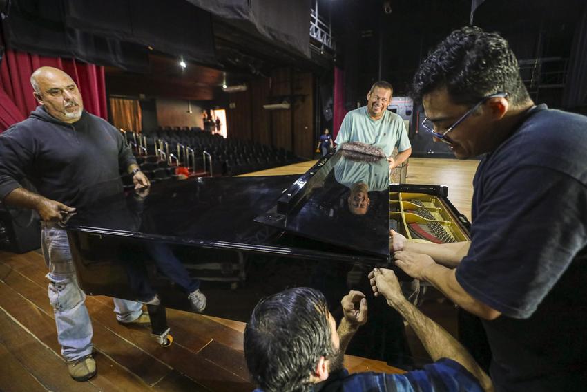 Porto Alegre, RS, Brasil, 10/4/2026: O lendário piano do Teatro Renascença que havia sido atingido na enchente de maio de 2024 retorna para o espaço cultural após ampla reforma que durou seis meses. Foto: Alex Rocha/PMPA