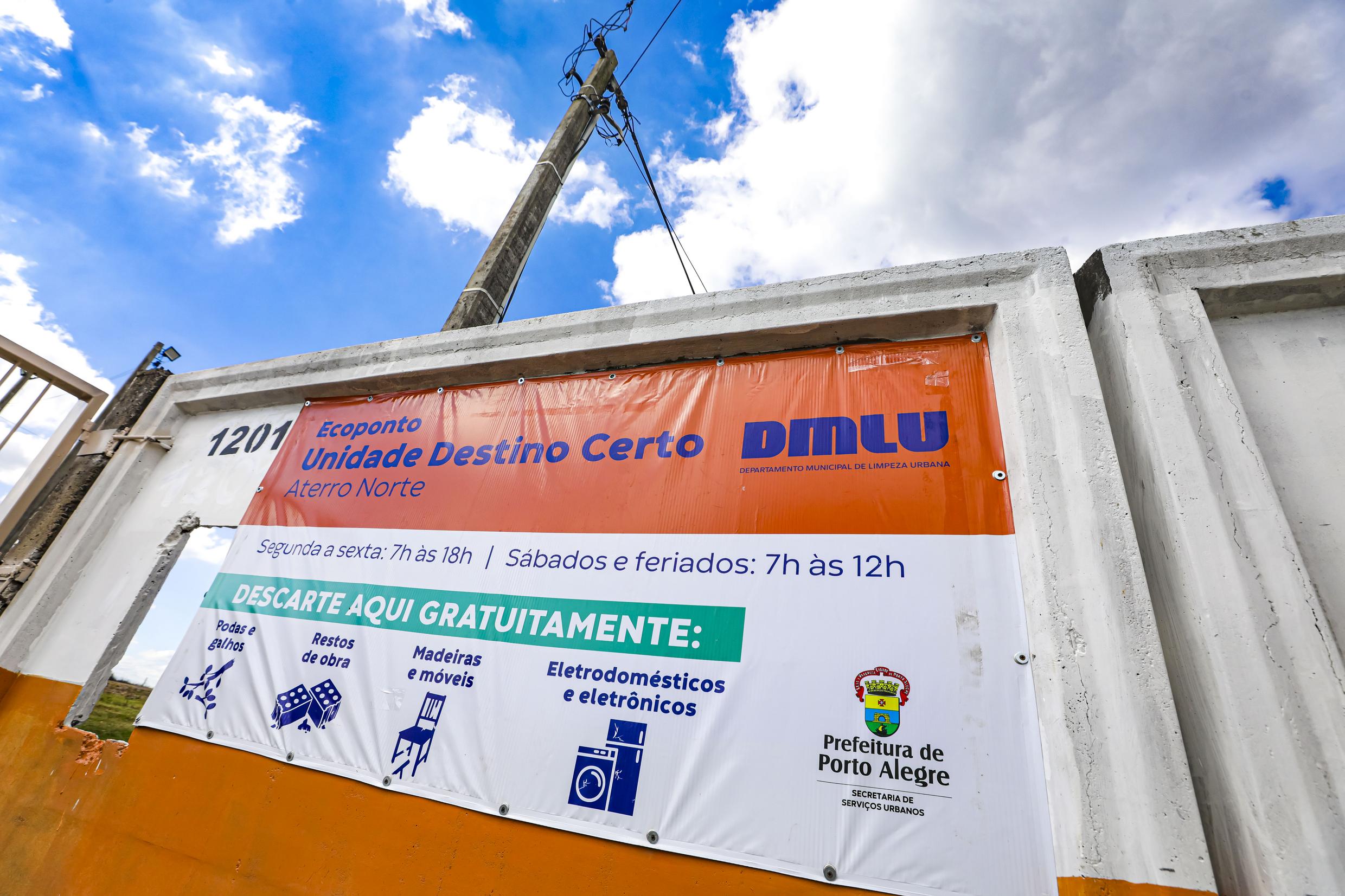 Porto Alegre, RS, Brasil, 13/4/2026: A Prefeitura de Porto Alegre, por meio do Departamento Municipal de Limpeza Urbana (DMLU), entregou nesta segunda-feira, 13, o Ecoponto Aterro Norte, localizado no bairro Sarandi. O local, tecnicamente chamado de Unidade de Destino Certo (UDC), é o nono ponto para o descarte gratuito de resíduos não recolhidos pelas coletas regulares da Capital. Foto: Alex Rocha/PMPA