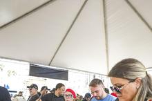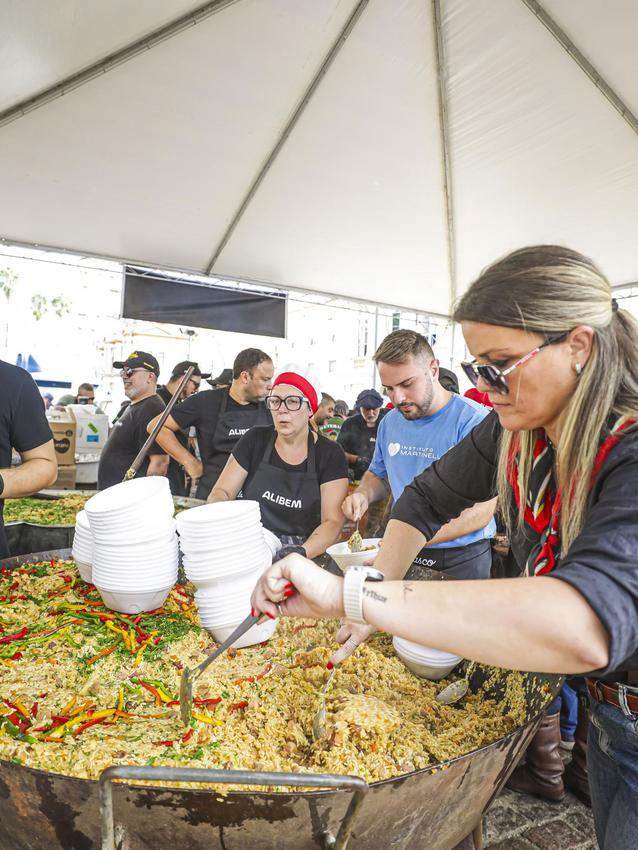 Porto Alegre, RS, Brasil, 15/4/2026: Nesta quarta-feira, 15, a partir das 12h, ocorreu o tradicional Assado e Paella Solidária no Largo Glênio Peres. Foram distribuídos 1.250 quilos de carne e 900 quilos de paella gaúcha, acompanhados de pão, refrigerante e água. O chef de cozinha e coordenador dos assadores foi René Barbachan, tradicionalista, cozinheiro, assador e patrono do Acampamento Farroupilha de Porto Alegre em 2025, juntamente com José Roberto Maraschin. A atividade foi gratuita, contou com diversas atrações musicais, como a Banda da Brigada Militar, Fábrica de Gaiteiros, de Borguetinho, com apresentação de músicas gauchescas, além de pagode e samba. Elmer Fagundes e Marcelo Cachoeira também se apresentam em parceria com a Secretaria Municipal da Cultura. Foto: Alex Rocha/PMPA