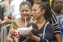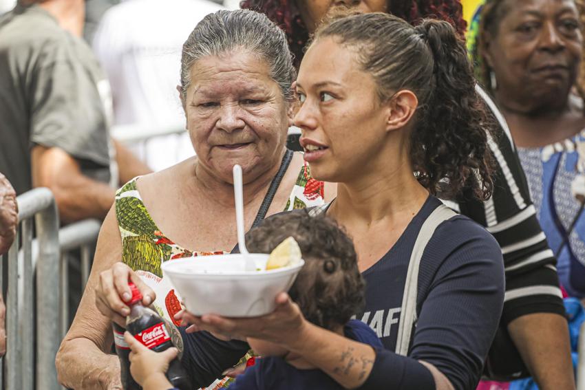 Porto Alegre, RS, Brasil, 15/4/2026: Nesta quarta-feira, 15, a partir das 12h, ocorreu o tradicional Assado e Paella Solidária no Largo Glênio Peres. Foram distribuídos 1.250 quilos de carne e 900 quilos de paella gaúcha, acompanhados de pão, refrigerante e água. O chef de cozinha e coordenador dos assadores foi René Barbachan, tradicionalista, cozinheiro, assador e patrono do Acampamento Farroupilha de Porto Alegre em 2025, juntamente com José Roberto Maraschin. A atividade foi gratuita, contou com diversas atrações musicais, como a Banda da Brigada Militar, Fábrica de Gaiteiros, de Borguetinho, com apresentação de músicas gauchescas, além de pagode e samba. Elmer Fagundes e Marcelo Cachoeira também se apresentam em parceria com a Secretaria Municipal da Cultura. Foto: Alex Rocha/PMPA