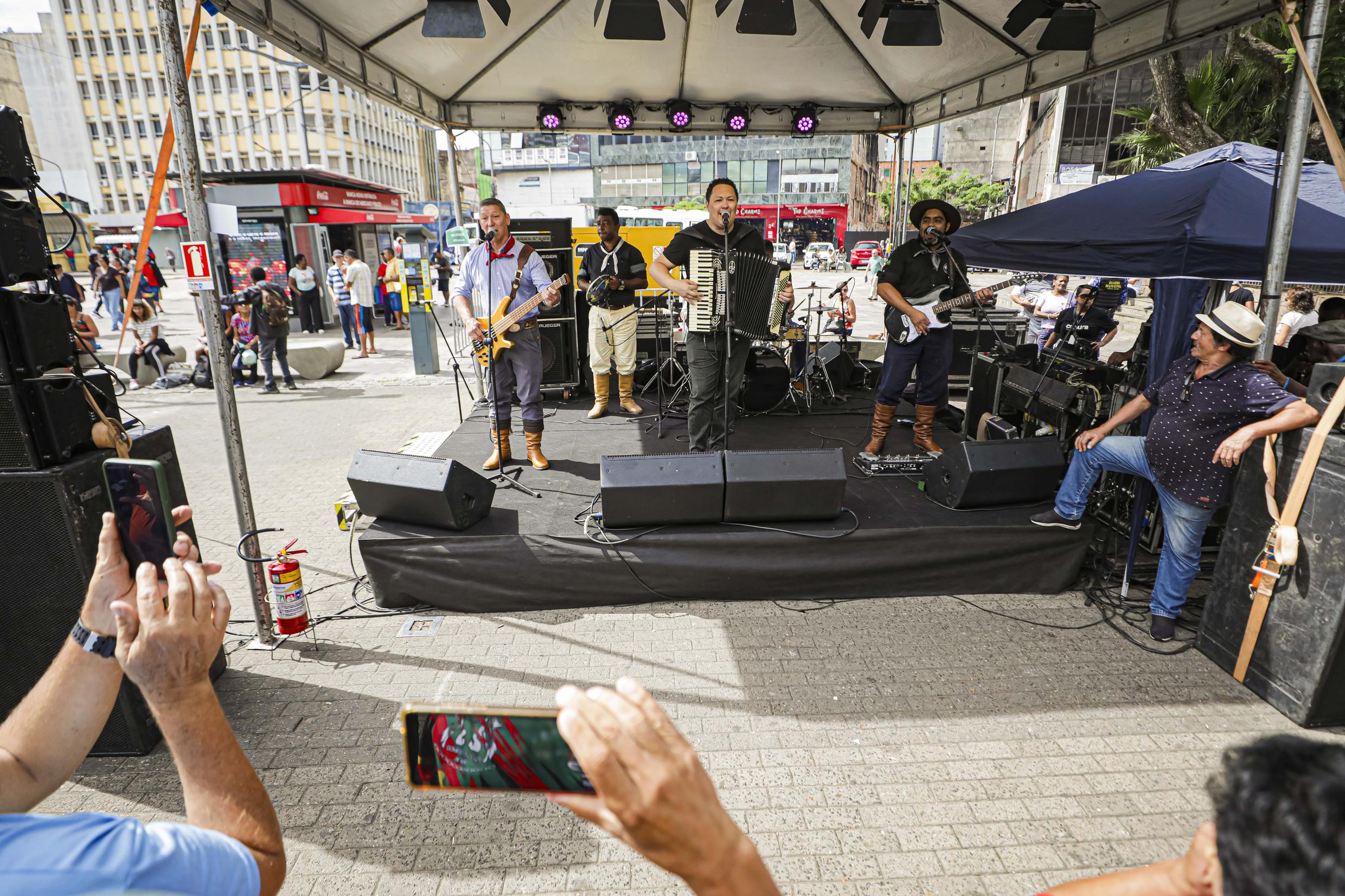 Porto Alegre, RS, Brasil, 15/4/2026: Nesta quarta-feira, 15, a partir das 12h, ocorreu o tradicional Assado e Paella Solidária no Largo Glênio Peres. Foram distribuídos 1.250 quilos de carne e 900 quilos de paella gaúcha, acompanhados de pão, refrigerante e água. O chef de cozinha e coordenador dos assadores foi René Barbachan, tradicionalista, cozinheiro, assador e patrono do Acampamento Farroupilha de Porto Alegre em 2025, juntamente com José Roberto Maraschin. A atividade foi gratuita, contou com diversas atrações musicais, como a Banda da Brigada Militar, Fábrica de Gaiteiros, de Borguetinho, com apresentação de músicas gauchescas, além de pagode e samba. Elmer Fagundes e Marcelo Cachoeira também se apresentam em parceria com a Secretaria Municipal da Cultura. Foto: Alex Rocha/PMPA