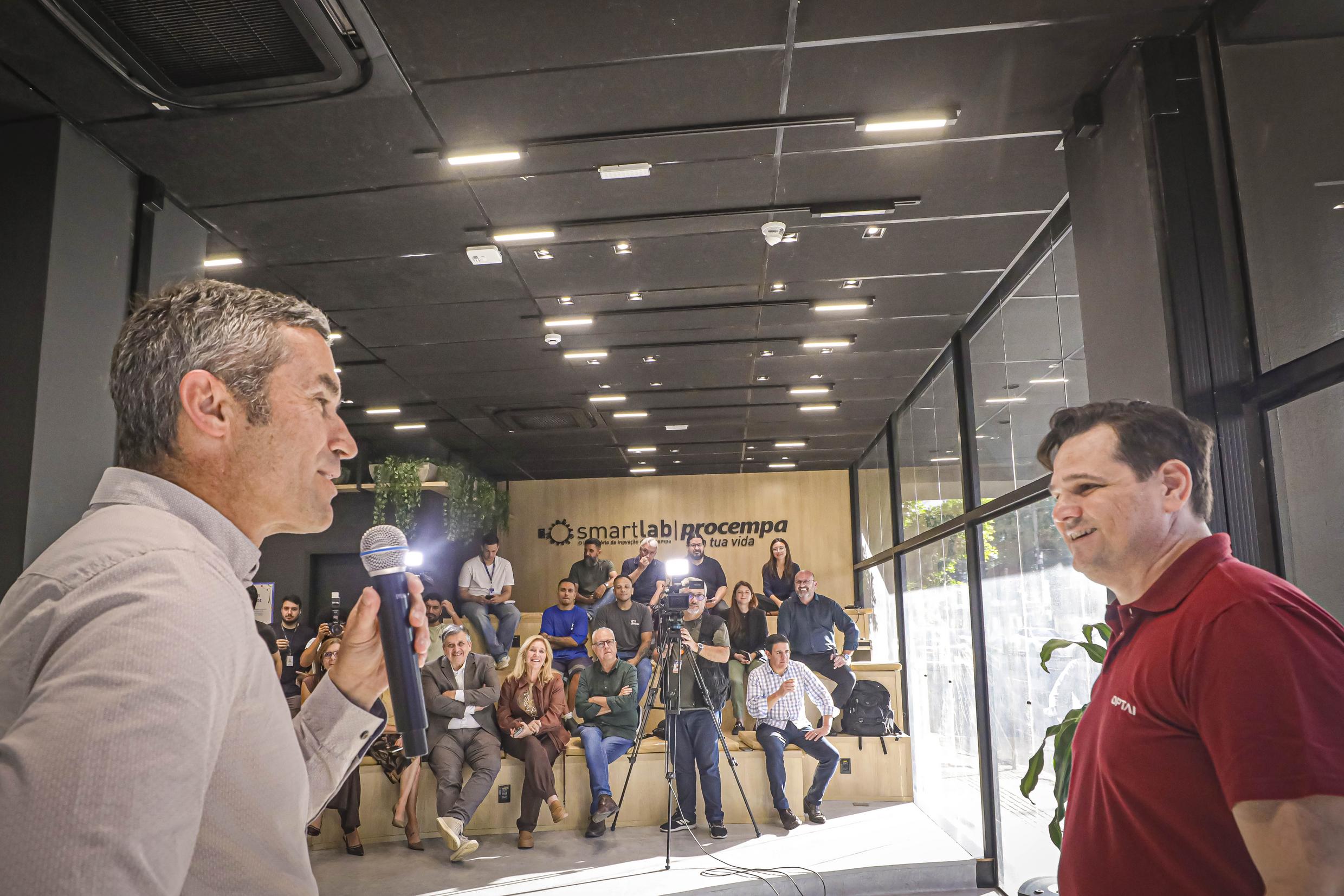 Porto Alegre, RS, Brasil, 15/4/2026: A Prefeitura de Porto Alegre apresentou nesta quarta-feira, 15, o Mobi+ Porto Alegre, novo aplicativo de mobilidade urbana. O lançamento ocorreu no Procempa SmartLab, localizado na rua General João Manoel, 157, bairro Centro Histórico. Baseado no conceito de MaaS (Mobility as a Service), o aplicativo integra, em uma única plataforma, diferentes opções de deslocamento em tempo real. A ferramenta reúne alternativas de transporte público e individual, como ônibus, patinetes, táxis, bicicletas compartilhadas e trajetos a pé, facilitando o planejamento de viagens multimodais e intermodais pela cidade. Foto: Alex Rocha/PMPA