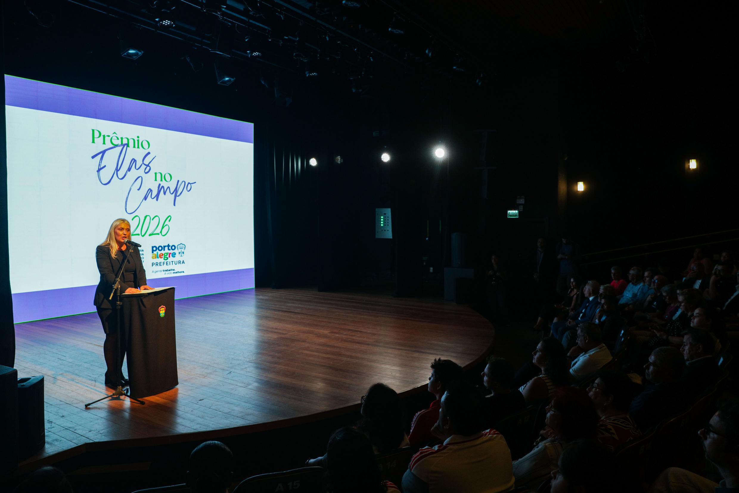 Porto Alegre, RS, 15/4/2026 - O Prêmio Elas no Campo, iniciativa reconhece atletas, treinadores e profissionais com atuação relevante no futebol feminino em Porto Alegre, foi entregue às vencedoras nesta quarta-feira. A cerimônia teve início às 19h, no Teatro Túlio Piva, na rua da República, 575, bairro Cidade Baixa. A organização é da Secretaria Extraordinária da Copa do Mundo Feminina de Futebol 2027 (Secopa). Fotos: Pedro Piegas / PMPA