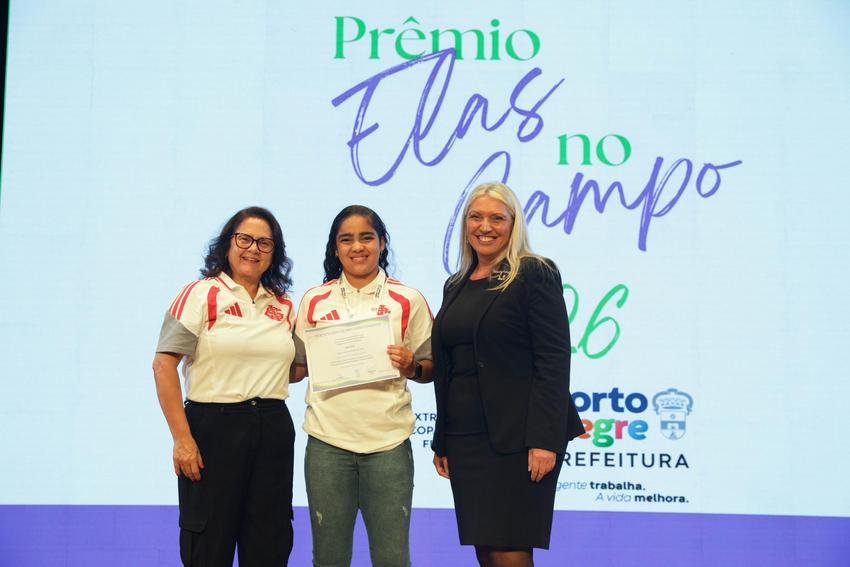 Porto Alegre, RS, 15/4/2026 - O Prêmio Elas no Campo, iniciativa reconhece atletas, treinadores e profissionais com atuação relevante no futebol feminino em Porto Alegre, foi entregue às vencedoras nesta quarta-feira. A cerimônia teve início às 19h, no Teatro Túlio Piva, na rua da República, 575, bairro Cidade Baixa. A organização é da Secretaria Extraordinária da Copa do Mundo Feminina de Futebol 2027 (Secopa). Fotos: Pedro Piegas / PMPA