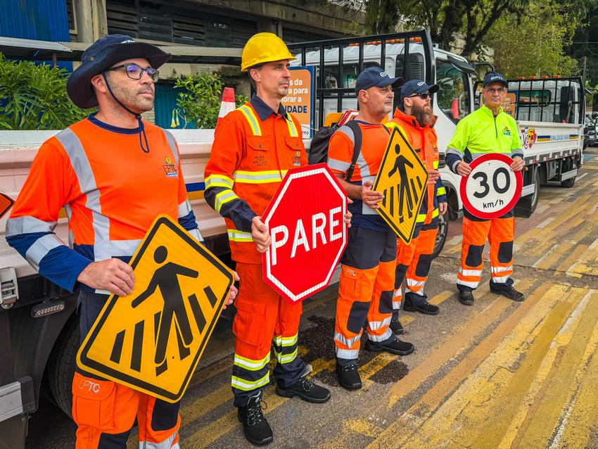 Porto Alegre, RS, 16/4/2026: A Empresa Pública de Transporte e Circulação (EPTC) realizou nesta quinta-feira a entrega dos novos uniformes destinados aos profissionais da Gerência de Mobiliário e Sinalização Viária. A iniciativa reforça o compromisso da instituição com a segurança operacional, a padronização das equipes e a qualificação das condições de trabalho nas atividades executadas diariamente nas vias da Capital. Os novos uniformes são compostos por vestimentas de segurança de alta visibilidade, desenvolvidas conforme a norma técnica NBR 15292/2013, com o objetivo de garantir que os trabalhadores, que atuam nas ruas nas 24 horas do dia, sejam facilmente identificados por motoristas, ciclistas e pedestres, especialmente em ambientes viários complexos. Esse tipo de vestuário funciona como um Equipamento de Proteção Individual (EPI), ampliando a visibilidade tanto durante o dia quanto à noite e contribuindo diretamente para a redução do risco de acidentes, como atropelamentos. Foto: Gustavo Roth/EPTC/PMPA