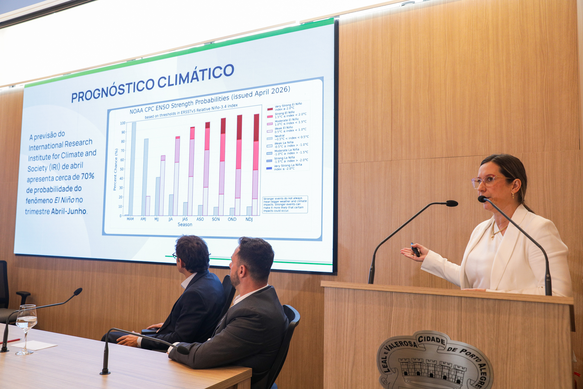 Porto Alegre, RS, 23/4/2026 - A Prefeitura de Porto Alegre realizou nesta quinta-feira, às 10h30, coletiva de imprensa para detalhar as obras e os investimentos no sistema de proteção contra cheias na Capital. Na ocasião, também foram apresentados os reforços na Defesa Civil Municipal e prognósticos atualizados do El Niño para o segundo semestre deste ano.