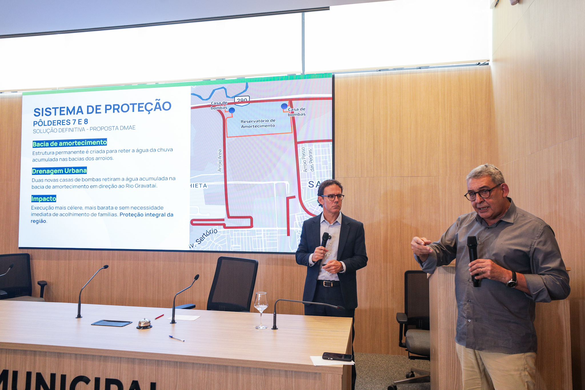 Porto Alegre, RS, 23/4/2026 - A Prefeitura de Porto Alegre realizou nesta quinta-feira, às 10h30, coletiva de imprensa para detalhar as obras e os investimentos no sistema de proteção contra cheias na Capital. Na ocasião, também foram apresentados os reforços na Defesa Civil Municipal e prognósticos atualizados do El Niño para o segundo semestre deste ano.