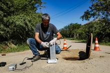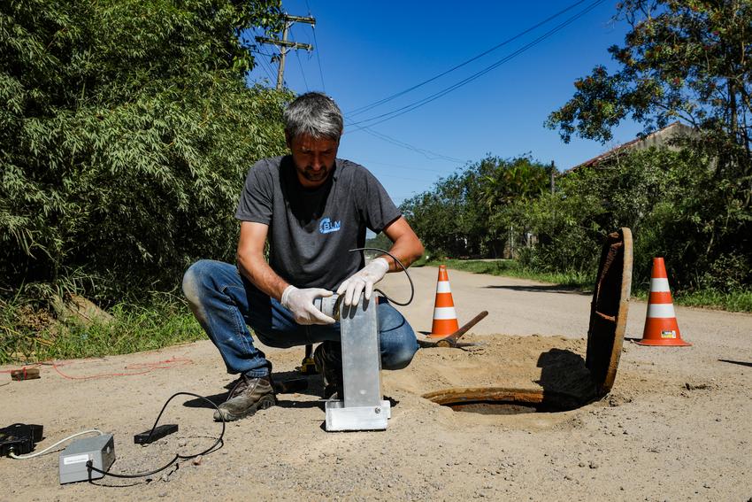 Porto Alegre, RS, 30/04/2026 - O Departamento Municipal de Água e Esgotos (Dmae) iniciou nesta quinta-feira um projeto piloto para o monitoramento remoto da rede de esgotamento sanitário. Os equipamentos foram instalados em diferentes pontos da Zona Sul e operarão em fase de testes por 90 dias. A iniciativa foi viabilizada pela autarquia e Secretaria-Geral de Governo, por meio do Gabinete de Inovação. Fotos: Pedro Piegas / PMPA