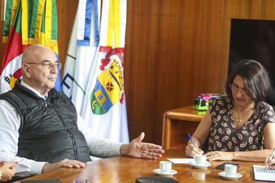 Porto Alegre, RS, Brasil, 12/11/2025: A prefeita em exercício, Comandante Nádia, recebeu na tarde desta quarta-feira (12) em seu Gabinete, no Centro Administrativo Municipal Guilherme Socias Villela (CAM), a visita de cortesia do deputado federal, Osmar Terra. Foto: Alex Rocha/PMPA