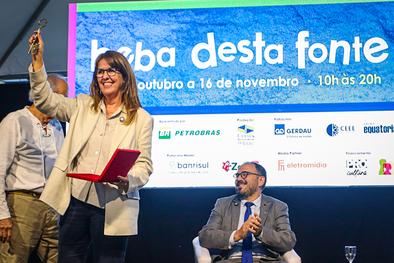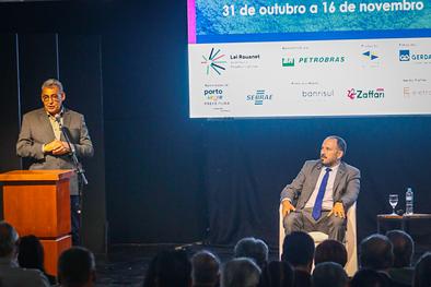 Porto Alegre, RS, Brasil, 31/10/2025: A 71ª edição da Feira do Livro de Porto Alegre, o maior evento literário do Rio Grande do Sul, abriu oficialmente nesta sexta-feira, 31, às 17h, no Teatro Petrobras Carlos Urbim, na Praça da Alfândega. A cerimônia teve o tradicional toque do sino e a presença de autoridades, da patrona desta edição, a escritora Martha Medeiros, e de representantes da Câmara Rio-Grandense do Livro e da Prefeitura de Porto Alegre. Foto: Alex Rocha/PMPA