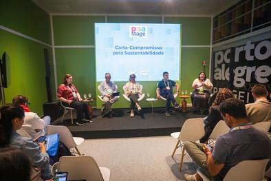 Porto Alegre, RS, Brasil, 26/03/2026: Na manhã desta quinta-feira (26), no espaço Poa Stage do South Summit Brazil 2026, foi realizado o painel Inovando em sistemas alimentares urbanos: Ações práticas e perspectivas. Foto: Alex Rocha/PMPA