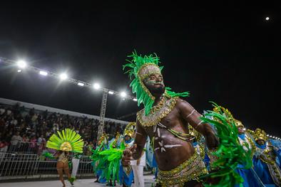 Porto Alegre, RS, Brasil, 28/02/2026: A S.B.R.C. Academia de Samba Unidos da Vila Mapa trouxe para a avenida, neste sábado, 28, o enredo Às Margens da Poesia, no Caminho das Águas: Um Banho de Axé. O desfile apresentou uma narrativa simbólica e sensorial onde a água não é apenas uma personagem, mas a própria linguagem que conduz o espectador por uma jornada de renovação e fé. Foto: Alex Rocha/PMPA