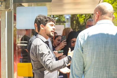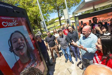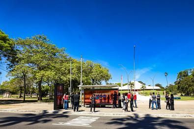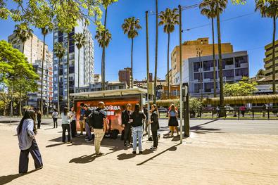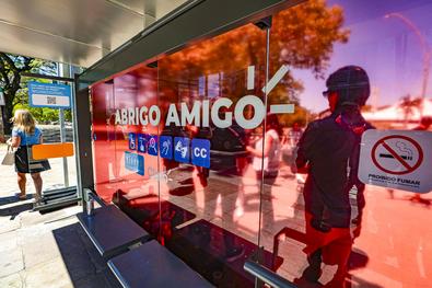 Porto Alegre, RS, Brasil, 22/10/2025: A Prefeitura de Porto Alegre, por meio da Secretaria de Mobilidade Urbana (SMMU), com apoio da Eletromidia e Claro, realizou nesta quarta-feira, 22, às 11h, a vistoria do primeiro ponto do abrigo amigo da cidade. O projeto transforma pontos de ônibus em locais de acolhimento, com possibilidade de acionamento de uma central de atendimento por vídeo. O primeiro ponto foi instalado na avenida Osvaldo Aranha, 909, bairro Bom Fim. No local, foi apresentado o funcionamento do sistema, além do impacto e os próximos passos da iniciativa na capital gaúcha. Foto: Alex Rocha/PMPA