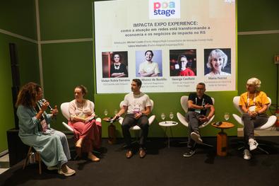 Porto Alegre, RS, 25/03/2026 - IMPACTA EXPO EXPERIENCE: Como a atuação em redes está transformando a economia e os negócios de impacto no RS no POA STAGE no South Summit Brazil 2026. Mediação: Michel Couto (Pacto Alegre/Hub Comunitário de Inovação Formô Hub) Sátira Machado (Pacto Alegre/Unipampa/IOS) Painelistas: Vívian Rubia Ferreira - ICE/Coalizão pelo Impacto; Pablo Munoz de Bustillo - Diretor Semente negócios e Fundador do Instituto Cória George Canfield - Diretor do Impact Hub Porto Alegre Maira Petrini - Coordenadora do Farol Hub Social do Tecnopuc. Fotos: Pedro Piegas / PMPA