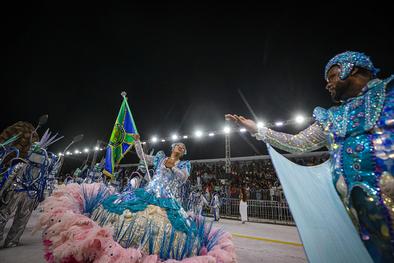 Porto Alegre, RS, Brasil, 28/02/2026: A S.B.R.C. Academia de Samba Unidos da Vila Mapa trouxe para a avenida, neste sábado, 28, o enredo Às Margens da Poesia, no Caminho das Águas: Um Banho de Axé. O desfile apresentou uma narrativa simbólica e sensorial onde a água não é apenas uma personagem, mas a própria linguagem que conduz o espectador por uma jornada de renovação e fé. Foto: Alex Rocha/PMPA
