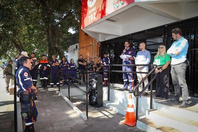 Porto Alegre, RS, 05/03/2026 A Secretaria Municipal de Saúde entregou uma nova modalidade de atendimento pré-hospitalar composta de equipe especializada e veículo com equipamentos diferenciados. O evento ocorreu na sede do Serviço de Atendimento Móvel de Urgência (Samu), na avenida Ipiranga, 3.501.
