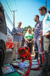 Participaram da entrega o secretário da SMS, Fernando Ritter, o coordenador do Samu POA, Fabiano Barrionuevo, a coordenadora municipal de urgências, Cátia Stein e o vereador Jesse Sangalli. Foto: Cristine Rochol/PMPA