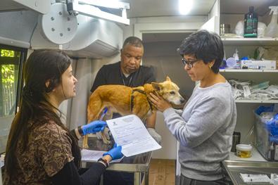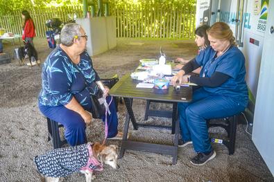 Porto Alegre, RS, Brasil, 09/10/2025: Mais de 100 animais foram atendidos na Ação da Unidade Móvel de Saúde Animal, na manhã desta quinta-feira, 9. A iniciativa é promovida pela Prefeitura de Porto Alegre, por meio do Gabinete da Causa Animal (GCA), em parceria com a Secretaria Municipal de Governança Local e Coordenação Política (SMGOV), por meio das subprefeituras. A equipe do GCA, com apoio de alunos e docentes da Faculdade de Veterinária da UFRGS, atendeu na Região Centro-Sul de Porto Alegre atendendo tutores de cães e gatos dos bairros Vila Nova, Cavalhada, Campo Novo, Teresópolis, Nonoai e Camaquã. Foto: Evelize Fabricio/GCA