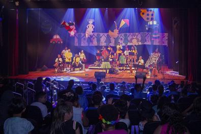 Porto Alegre, RS, Brasil, 09/10/2025: Concerto Tindolelê do Sons do Morro da EMEF Professora Judith Macedo de Araújo. O espetáculo foi realizado no Teatro Renascença, no bairro Menino Deus. Foto: Henry Rodrigues/SMED