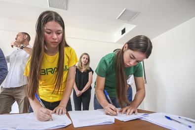 Porto Alegre, RS, Brasil, 12/12/2025: Na tarde desta sexta-feira (12), foi realizado, no auditório do 18º andar do Centro Administrativo Municipal Guilherme Socias Villela (CAM), o ato de assinatura do com os atletas contemplados no programa Bolsa-Atleta Municipal. Foto: Alex Rocha/PMPA