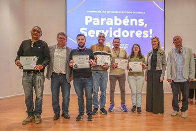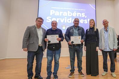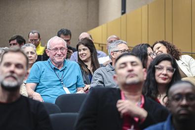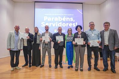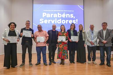 Porto Alegre, RS, Brasil, 31/10/2025: Em um evento que contou com a presença da vice-prefeita, Betina Worm, foi realizada na tarde desta sexta-feira (31), no auditório da Associação dos Auditores Fiscais da Receita Municipal de Porto Alegre (AIAMU), no bairro Centro Histórico, uma cerimônia para homenagear os servidores municipais pelo seu Tempo de Serviço. Foto: Alex Rocha/PMPA