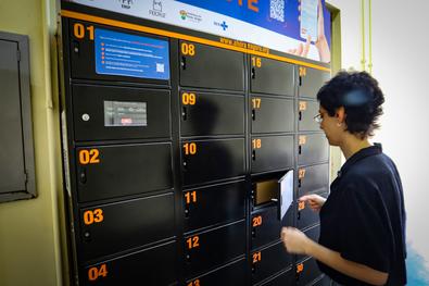 Porto Alegre, RS, 08/12/2025 Programa A Hora é Agora. Armário para retirada de kit com autoteste e orientações, localizado no interior do Mercado Público (entrada da Praça Parobé quase na esquina com Júlio de Castilhos). Foto: Cristine Rochol/PMPA