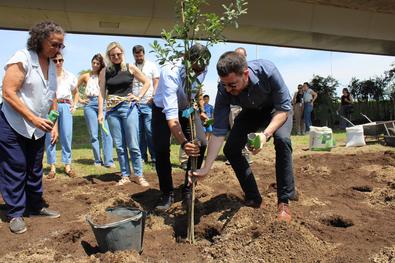 Porto Alegre, RS, Brasil, 15/12/2025: Na manhã desta segunda-feira, 15, o início do plantio de 850 árvores nativas em área de cerca de 600 m2 marcou a implantação da primeira floresta de bolso de Porto Alegre, entre a avenida Padre Cacique e o viaduto Abdias do Nascimento (avenida Pinheiro Borda), no bairro Praia de Belas. Foto: Sergio Louruz/SMAMUS