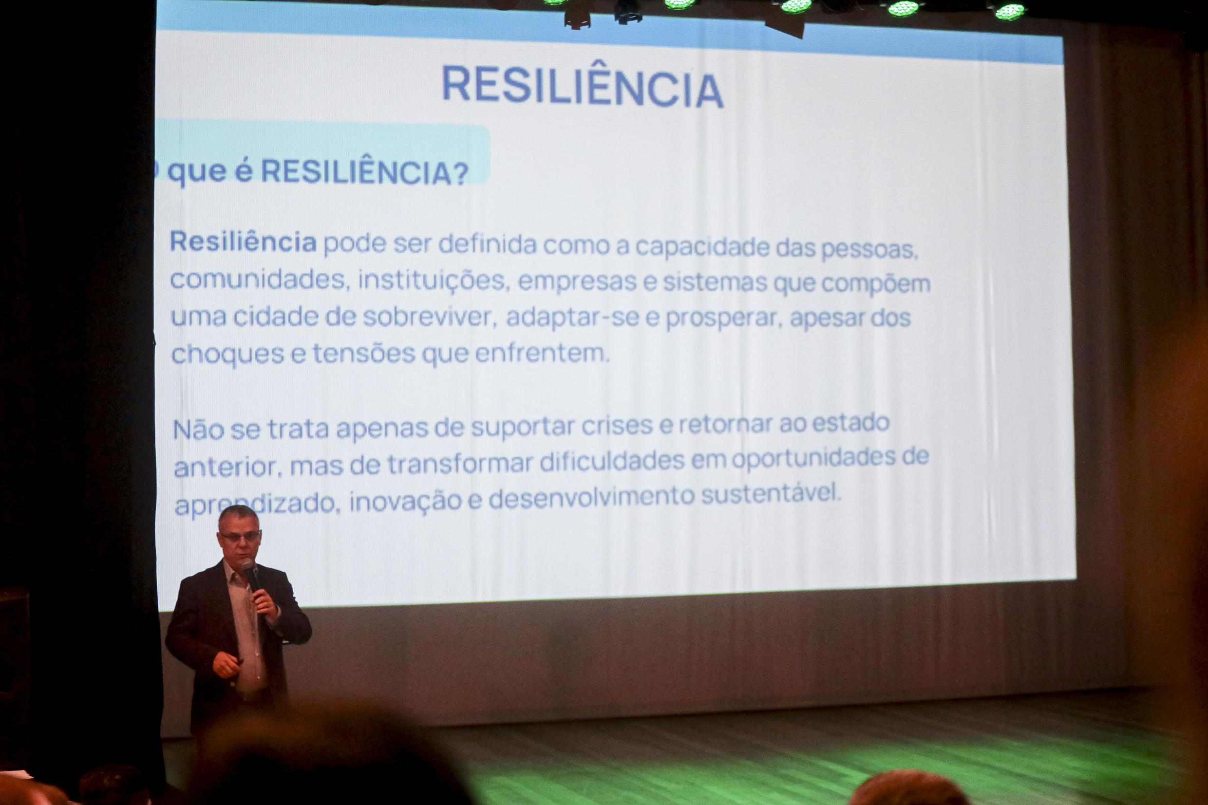Porto Alegre, RS, Brasil, 22/9/2025: O prefeito Sebastião Melo participou da cerimônia de instalação do Comitê Permanente de Resiliência (CPR) da Capital nesta segunda-feira, 22, durante evento no Teatro de Câmara Túlio Piva, na rua da República, 575, bairro Cidade Baixa. Durante o ato, foram empossados os membros do CPR, que terão entre os seus objetivos atualizar a Estratégia Municipal de Resiliência de Porto Alegre. Foto: Alex Rocha/PMPA