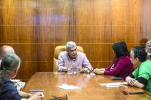 Porto Alegre, RS, Brasil 08/10/2025: Com a presença do prefeito, Sebastião Melo, foi realizada na manhã desta quarta-feira (08), na sala de reuniões do 17º andar do Centro Administrativo Municipal Guilherme Socias Villela (CAM), reunião entre integrantes do governo e do Sindicato dos Municipários de Porto Alegre (Simpa). Foto: Alex Rocha/PMPA